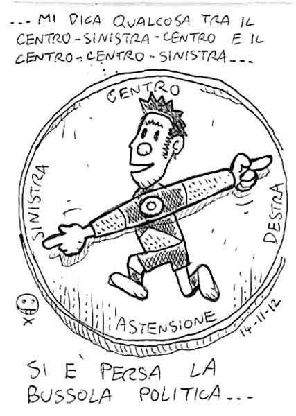 Fino a qualche mese fa avevo due blog, uno interamente dedicato alla corsa, l’altro onnicomprensivo, vignette politiche, illustrazioni ecc. Per motivi soprattutto di tempo, ho fatto convergere il diario podistico nel blog “generalista”, dedicandogli un’apposita categoria. Questa contiguità ha avuto un effetto imprevisto: le vignette sportive hanno cominciato a specchiarsi in quelle politiche, e quelle ispirate all’attualità sono diventate più personali. Voglio provare a non contrastare questa tendenza, e vedere cosa ne esce fuori. Ovviamente salta il discorso “un allenamento, una vignetta”, raccoglierò assieme tutte le vignette della settimana, quindi (si spera) le vignette saranno più degli allenamenti. Up to some months ago, I had two blogs, the graphic running log and the comics and illustrations one. Having poor time, I converged the two, placing the running log among the political sketches. Unexpectedly, sketches from different blogs started to merge, so from now on I will collect them in the same post on a weekly basis. This means (I hope) that I will have more sketches than trainings to show.   Lunedì una decina di km dentro e fuori la villa, con la salita di via Vitellia, martedì un’oretta, con due salite. Sabato quasi un’ora di fondo lento nel fango di villa Pamphili: inebriante! Settimana piovosa, ed io odio correre sotto l’acqua. Link to this article