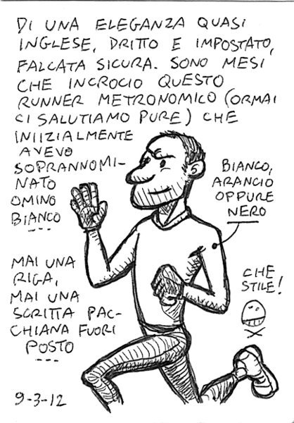 Incasellare le persone, è quello che facciamo tutti i giorni… – This one guy I meet almost every day at the same spot. I filed him under: good runner, nice outfits. Nickname: The White Boy. AM, villa pamphili. 47’10 di fondo lento. Link to this article
