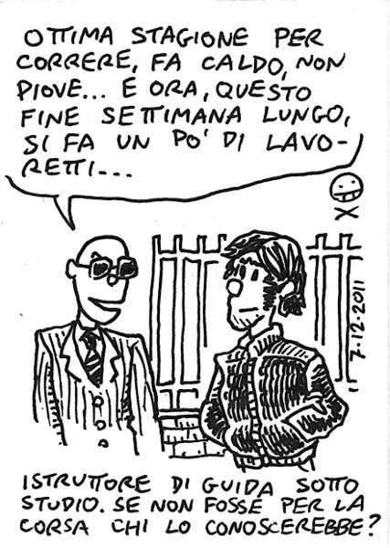 Seguendo l’esempio della Fornero, milioni di italiani si sono messi a piangere provocando alluvioni e mareggiate. Visto il dissesto idrogeologico del paese suggerirei una campagna promozionale di cura per i meteoropatici… – Welfare minister Fornero proved us at a press conference that anyway she is human. “It’s not rain, it’s Fornero weeping…” Link to this articleStavi camminando! / You were walking!