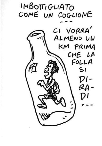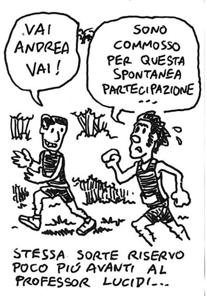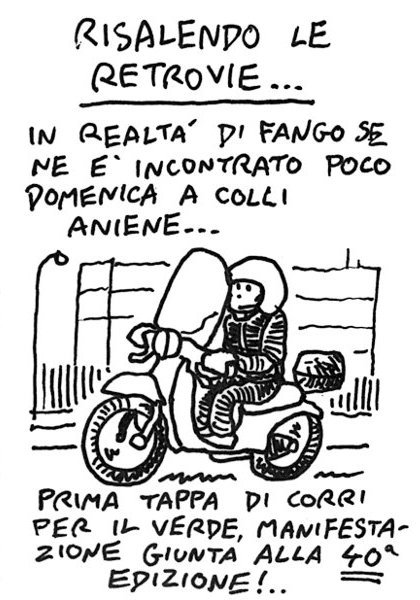 Domenica prima tappa della Corri per il Verde, manifestazione alla 40ma edizione organizzata dalla UISP. Si corre a Colli Aniene, in un parco coraggiosamente strappato alla speculazione edilizia. Immaginate cosa dovevano essere queste gare negli anni settanta, quando il loro scopo ultimo era veramente quello di riqualificare aree abbandonate della metropoli. Sono abbastanza soddisfatto della mia prestazione, circa 6km alla media di 4’20, nonostante un increscioso incidente iniziale che vi descrivo nelle vignette… – The Corri per il Verde (Run for Green) scores this year it’s 40th edition. It was created in the seventies, with the aim to preserve residual areas that where abandoned by farmers and devoured by real estate speculation. I’m satisfied with this race, except for a small accident that I recall in the sketches… Link to this article