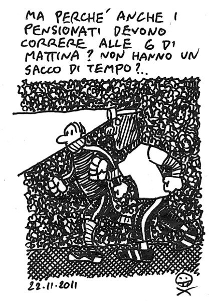 I moderni umoristi utilizzano molto la ripetitività delle immagini, a volte mascherando la sciatterìa con la cifra stilistica, complice il computer. E’ un po’ come alla radio, in cui passano a ripetizione canzoni mediocri fino a fartele piacere… – Seriality can improve productivity even in comics, but style must not be confounded with sloppiness… Second sketch makes no sense at all if not related to the previous… Link to this articleL’attesa / Waiting