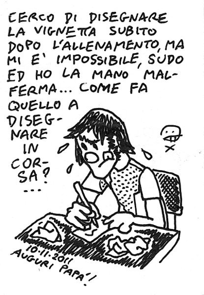 Adesso sono entrato in fissa con il disegnare magari non durante la corsa ma a ridosso… Normalmente mi prendo anche qualche giorno, soprattutto se si tratta di una gara, ho bisogno di sedimentare un po’. Ma forse sto esagerando… – I try to draw the sketch just minutes after the training, but it’s impossible: I shake and sweat. How can that guy run, draw and tweet all at once? AM/PM, villa Giuseppina. 2km L, 1km (4’20), STR, 3 x (1km + R) (4’02, 4’01, 3’56), 1km L, STR. Come vedete quando si parte un po’ più lento poi si va in progressione. Avanti così! Link to this articleSoda caustica / Sodium hydroxide