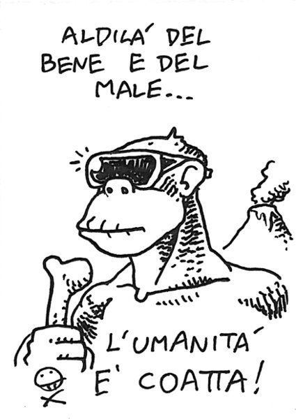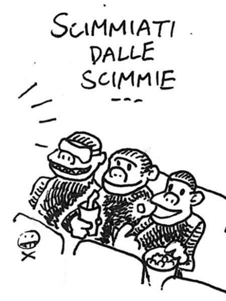 Scimmia è SIMPATIA! Scimmia è ALLEGRIA! E’ solo perchè sono difficili da addestrare all’uso del water che non gli apro le porte di casa mia. Mi sono dovuto accontentare di un paio di figli, meno simpatici ma più puliti… – Monkeys are FUN! Monkeys are FRIENDS! If only were they able to use the bathroom, I’d have plenty in my house. I had to settle down on a pair of kids, less fun but cleaner… Link to this articleCoatti ab origine / Cool monkey