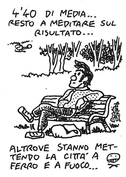 La maratona a staffetta non è andata benissimo, la prima squadra è arrivata quarta, le altre due non erano all’altezza. Ho fatto un po’ di errori nella preparazione che mi hanno portato ad un risultato personale deludente, le vignette raccontano tutto. Sull’altro piatto della bilancia abbiamo una villa Borghese splendida ed una manifestazione molto piacevole. – I didn’t run very well in the relay marathon, due to some errors in the preparation. On the other hand villa Borghese was wonderful, and the race in itself is enjoyable. Link to this articleDrone