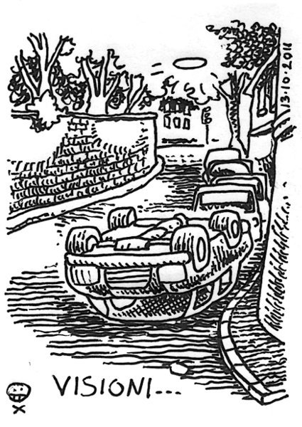 Mentre corro mi capita di vedere con la coda dell’occhio animali o persone dove magari ci sono una pietra o un cartello stradale. Stamattina ho avuto la netta sensazione di vedere questa macchina capovolta… – While I run it happens that I see dogs or people in place of rocks or road signs. This morning I’ve seen a car, upside down! AM, Villa Pamphili. 3,5km L, 2km (8’48), R, 1km (3’43), 2km L, STR. Volevo fare semplicemente 3km a ritmo gara (4’15), e invece sono partito a razzo nel primo km smosciandomi nel finale. Del km successivo non ne parliamo nemmeno. Io ‘sta staffetta la vedo e non la vedo… Link to this article