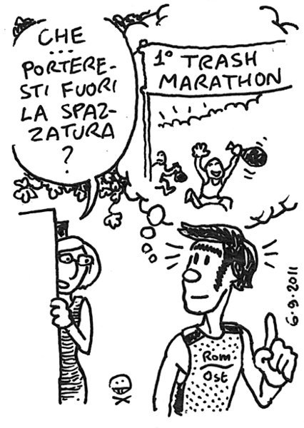 Fermo restando che ognuno può andare vestito come gli pare senza che nessuno abbia nulla a ridire, il panorama osservabile nei luoghi frequentati da runner mi rafforza nel convincimento: l’abbigliamento è un’istanza fondamentale (attenzione, nella vignetta ho un po’ esagerato con i fiocchetti). – Clothing is a fundamental issue. Even though I’ve exaggerated with the bows, in this case black and white really is a limitation. AM, Villa Pamphili. 9km FL, STR, 2km FL. Un’altra giornata di avvicinamento alla gara di domenica, di nuovo accompagnato da Stefano. La temperatura al mattino è piacevole, mi sento in forze. Link to this articleTrash Marathon