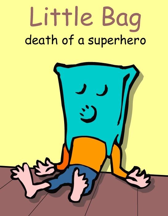 Death of a superhero. Little Bag was featured on the credits page of The Boomers‘ album “Fast and Bulbous”, probably because one of the songs talks about a man suffocating in a plastic bag. Actually “Little Bag” is a story I’m gonna write sooner or later. Link to this article