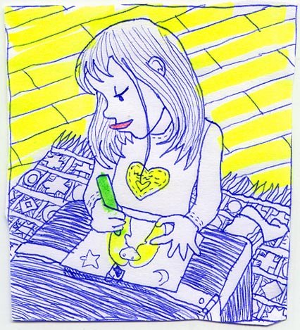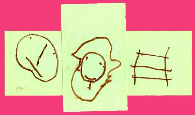 1 – Anna drawing with tongue peeking from lips. 2 – ARTATTACK, this is how little Anna calls the fence-like shape next to Big Nose and Madam. 3 – DOUBLE XX, that’s what makes her so special. Link to this article