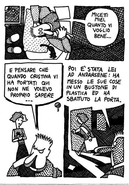 Dated 1990, a true, sad story. Tightly bonded are childhood flashbacks, Andrea Pazienza’s comics and the theme of in sleep drifting. Drawn in the same weeks of “The Plant“, witnesses my efforts for a personal style (images, total 906KB). Link to this articleAnthrax
