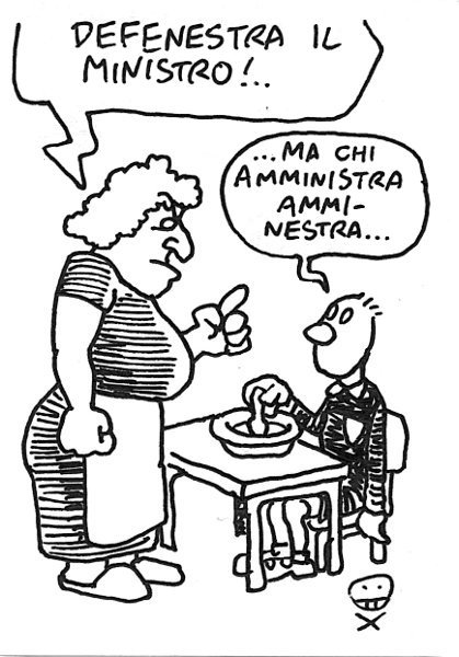 I moderni umoristi utilizzano molto la ripetitività delle immagini, a volte mascherando la sciatterìa con la cifra stilistica, complice il computer. E’ un po’ come alla radio, in cui passano a ripetizione canzoni mediocri fino a fartele piacere… – Seriality can improve productivity even in comics, but style must not be confounded with sloppiness… Second sketch makes no sense at all if not related to the previous… Link to this articleMinestra o finestra / Soup or window