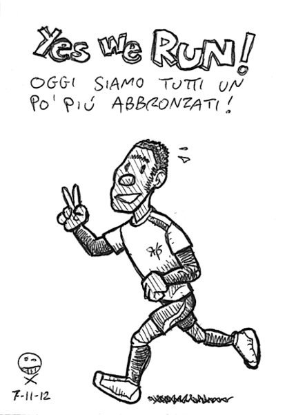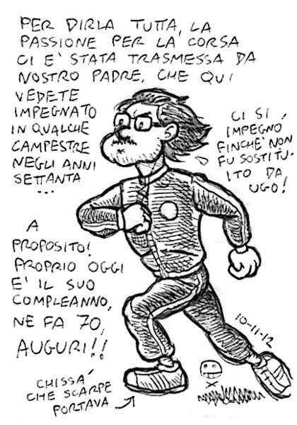 Settimana standard per quanto riguarda gli allenamenti, anche se non ho ancora fatto gli accertamenti richiestimi dal medico sportivo, per cui niente lavori, ma mi sento bene. Mia figlia fa una campestre, Obama viene rieletto, rivolta generazionale nel PdL, mio padre compie gli anni. Mi sembra che tutto torni, il cerchio settimanale si chiude… / An average training week, with no particular highlights. My daughter runs a cross, Obama is re-elected, problems in Berlusconi’s party, 70 candles for my father. That’s all, weekly cycle is complete! Martedì 10k, mercoledì idem, venerdì 45′ abbastanza tirati con due belle salite, sabato 1h circa, il tutto di fondo lento. Link to this articlePadri e figli / Fathers & sons