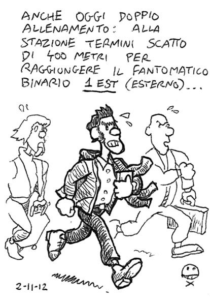 Ogni tanto il mio medico sportivo mi richiede degli accertamenti. Si tiene in ostaggio il mio certificato medico sportivo (quello che mi permette di gareggiare) e mi manda a fare qualche elettrocardio coso che puntualmente non rileva niente di anormale. I più maliziosi ci vedono dietro il classico accordo di casta (fateci lavorare tutti), mentre io la penso in modo un po’ diverso: visto che c’è di mezzo l’accesso alle gare, gli scimmiati sportivi over 40 fanno la prevenzione che altrimenti non avrebbero mai fatto… – Once in a while my sports doctor asks for ascertainments. My medical certificate (the one that allows me to compete) becomes an hostage, and I have to do some electrocardiographic thing that invariably shows nothing. Malicious guys see it as an agreement among doctors (& work for all), but I think it’s different: without gun at their head, over 40 sport junkies would never do prevention on their own… Martedì visita cardiologica, mercoledì una decina di km dentro e fuori la villa, con la salita di via Vitellia, giovedì un po’ meno che dovevo svegliare prima mia figlia. Sabato un’ora di fondo lento. Ancora niente lavori, attendo il “verde” dal medico sportivo! Link to this articlePolitichese / Political jargon