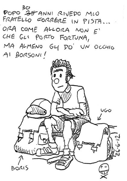 L’ultima volta che avevo visto mio fratello correre in uno stadio era stato al san Paolo di Napoli, finale provinciale dei 1500 ai Giochi della gioventù. Circa trent’anni dopo, stessa distanza, questa volta allo stadio della Farnesina di Roma in occasione dei campionati assoluti regionali. Ugo chiude in 4’26, Boris a 4’22 in un’altra batteria. “Non è cambiato nulla da allora…”, dice sconsolato mio fratello (si riferisce al risultato della gara). – It’s been 30 years or so that I havn’t seen my brother running in a stadium. As always, I wasn’t his lucky charm, but at least I look after his bag… AM, villa Pamphili. Riscaldamento, STR, 3.7km a 4’03, R, 0.53km a 3’40, STR, scarico. Volevo fare 5km a ritmo gara, ma vado troppo veloce e sono costretto a fermarmi. Link to this article