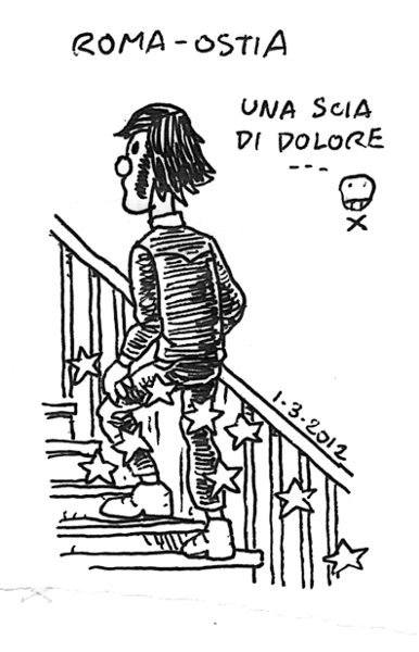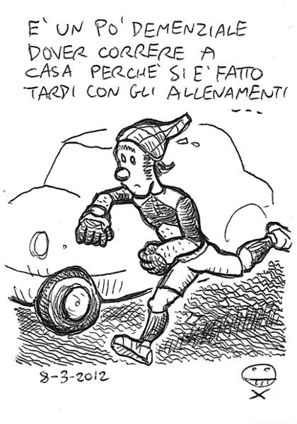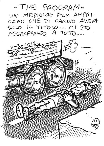 Passata la festa, gabbato lo santo, è quello che pensano molti runner dopo l’orgia della Roma Ostia. Sta di fatto che strade e ville sono vacanti di podisti nonostante il bel tempo e le giornate lunghe. Io considero la mezza maratona più amata dagli italiani un semplice trampolino per migliorare. Ho notato che più o meno nelle ultime gare (quelle che mi sono degnato di correre veramente), la mia media è di 4’35, il che va bene per una mezza, ma per un cross di 6km forse si potrebbe tirare un po’ di più. Il problema è che in questi ultimi mesi di qualità ne ho fatta ben poca: correndo per strada dalle 6 alle 7 del mattino non è facilissimo organizzarsi delle ripetute! Dopo il ghiaccio e il buio tiro fuori dall’armadio un programmino semplice semplice per i 10k sopra i 42′ che mi ero scaricato da internet parecchio tempo fa (non ricordo da dove). Il programma è quello che è, ma il mio obbiettivo è di seguirlo alla lettera e vedere che succede. The Program era un filmaccio americano con James Caan che non ho nemmeno visto. Nel film degli studentelli in cerca di emozioni si sdraiavano sulla statale facendosi passare i camion a poche spanne di distanza. La vulgata vuole che qualcuno ci abbia provato davvero con risultati catastrofici… – I’m starting a new program to improve my speed. The Program was a bad movie with a good title. In the film some annoyed students lay down on the asphalt letting the trucks pass by (it is said that somebody tried for real, with terrible results). I’ll clutch to anything just to improve my pace! AM, villa Pamphili. 8km FL, 5×100 allunghi. Saltata la prima seduta (martedì pioggia), inizio con questo lento decurtato di un km. Gli allunghi li faccio sotto casa, in salita. Link to this articleSradicato / Eradicated