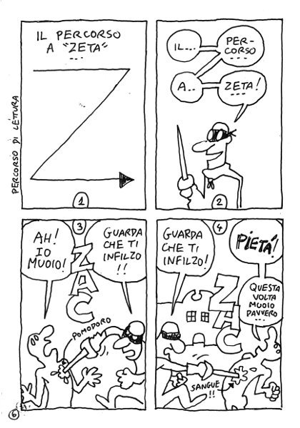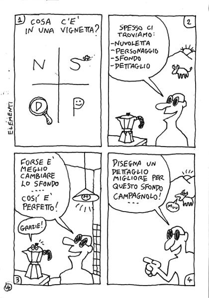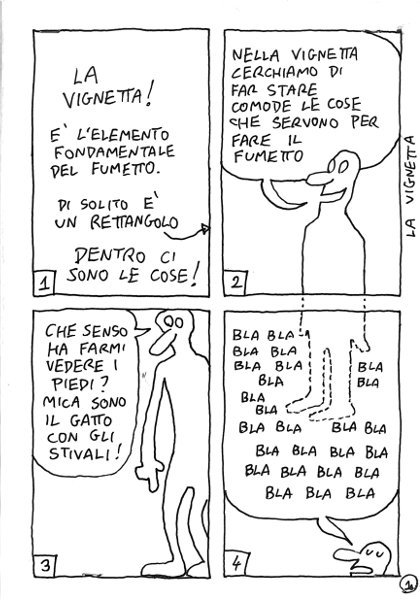 Sto facendo un piccolo corso di fumetto in classe di mio figlio. La prima lezione l’ho tenuta la settimana scorsa, una lezione introduttiva in cui gli ho fatto vedere esempi storici e contemporanei, Chris Ware, Spiegelmann, Cavazzano, Pazienza e Joe Sacco. In questa seconda ci siamo concentrati sulla vignetta. Per ogni lezione produrrò un piccolo fumettino di otto tavole formato A5, con esempi ed esercizi… – I’m holding a comic book class in my son’s school. Last week there was an introduction, yesterday we focused on the frame. At each lesson I’ll prepare a small booklet with examples and exercises… Link to this article