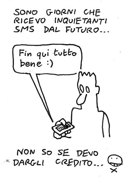 Il mio cellulare è una baracca con la suoneria rantolante. Ciononostante è in grado di captare messaggini emoticosi dal futuro profondo… – I keep receiving SMS from the future: “Everything ok, so far :)”… Should I trust them? Link to this articleSinfonia mattutina / Morning symphony