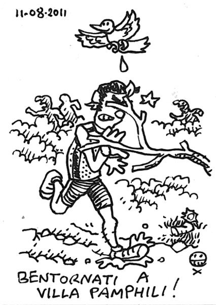 Con il sole a picco questo pazzo se ne andava inguainato in un tutino di neoprene. Comunque me l’ha mandato il dio dei fumettisti, dato che non sapevo che cavolo disegnare. – A new way to kill yourself: wear a neoprene diving suit and run around at high noon… AM, Tarquinia. 4km L, STR, 3.8km (15’39). Andavano corsi 5km a 10″ sotto il ritmo gara, ne ho fatti 3 a 4’00 e un altro in modo da terminare ad una media di 4’06. Io mi accontenterei! Link to this articleBentornato! / Welcome back!