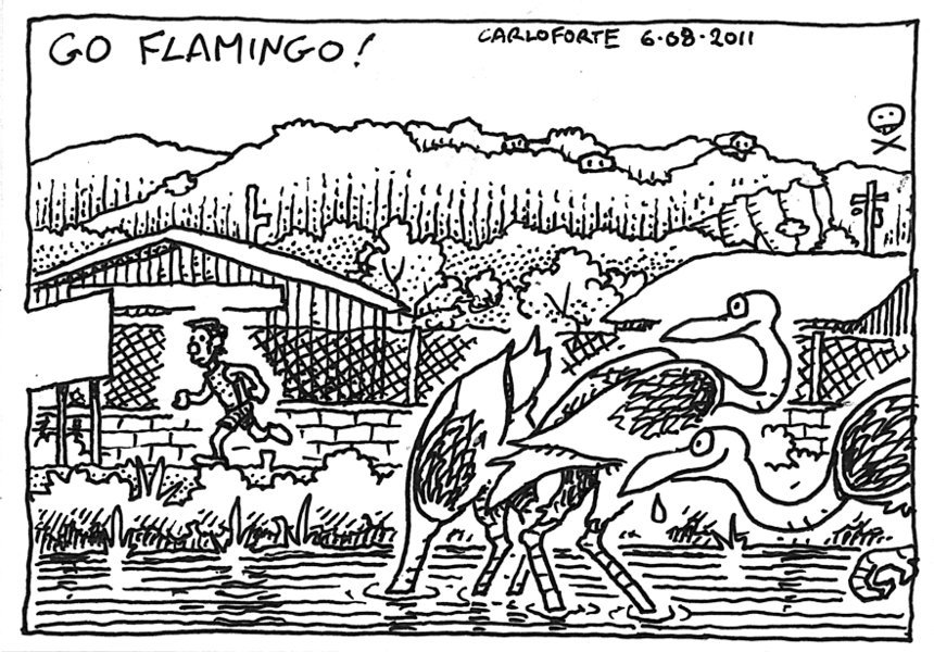 Sull’isola ho trovato un circuito di 14km che ho sempre percorso in senso antiorario. Quest’oggi ho preso la direzione inversa e la cosa mi ha dato un po’ fastidio. – On the island I found this 14km circuit that I always ran anti clockwise. Today I ran the other way round, and I felt a little bit dizzy. AM, Carloforte. 4km L, STR, 8km (36’22). Allenamento fuori programma. Visti i risultati dell’ultimo allenamento volevo forzare sui 10km, ma visti i risultati modesti (4’32/km), mi sono fermato. Si vede che avevo ancora nelle gambe i 16km di sabato. Link to this articleGo Flamingo!