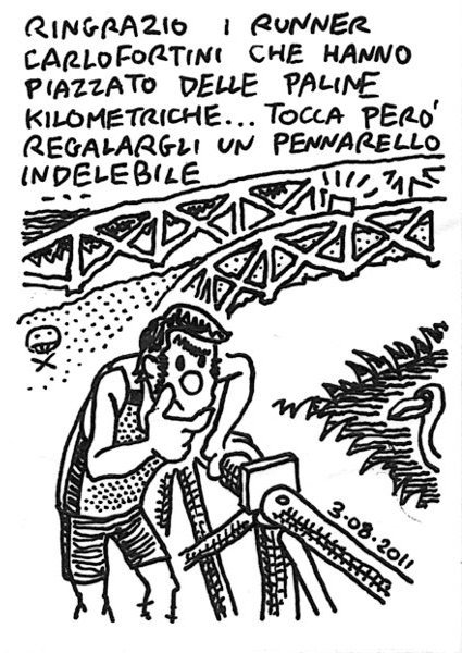 Con il sole a picco questo pazzo se ne andava inguainato in un tutino di neoprene. Comunque me l’ha mandato il dio dei fumettisti, dato che non sapevo che cavolo disegnare. – A new way to kill yourself: wear a neoprene diving suit and run around at high noon… AM, Tarquinia. 4km L, STR, 3.8km (15’39). Andavano corsi 5km a 10″ sotto il ritmo gara, ne ho fatti 3 a 4’00 e un altro in modo da terminare ad una media di 4’06. Io mi accontenterei! Link to this articleBentornato! / Welcome back!