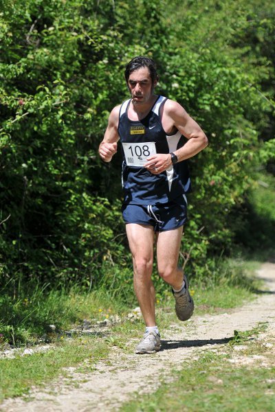 Il mio primo trail ed ultima gara del “Criterium“, una specie di competizione interna alla mia squadra. La vignetta descrive il mio angolo visuale per la maggior parte della gara. – My first trail. 13.5km up and down hill on fairly rough roads. Despite the beautiful landscape, the sketch shows my point of view during most of the race. Le foto sono di Corrado De Sanctis, ASD Atletica Carsoli. Sveglia alle sei, dopo un’ora inforco il motorino e raggiungo mio fratello a Frascati (34km), di lì in macchina siamo a Vallinfreda (RM) verso le nove. La giornata è splendida, prendiamo i pettorali per sette (!) partecipanti di Rifondazione Podistica, quasi tutti neofiti della specialità. Breve riscaldamento e partenza imbottigliato, come al solito. Il primo km è su asfalto, raggiungo e supero Conti che arriverà un minuto dopo di me. Cominciano le sterrate, affronto le salite con caparbietà (fa parte del mio allenamento) e risalgo il fiume di concorrenti. Salto il primo rifornimento, subito dopo una salita impegnativa. Mi stabilizzo in un gruppetto, molti camminano in salita, io li supero ma loro mi riacchiappano in discesa, dove vado molto cauto per paura di farmi male. A metà gara si vola, una lunga discesa poco ripida, finalmente si può gustare il panorama. Arrivo al nono km senza mai camminare, al secondo rifornimento prendo un po’ d’acqua (rifornimento = salita) avendo l’accortezza di rimettere il bicchiere sul tavolo. Al decimo km prendo a camminare su una salita lunga e impegnativa, cerco di risparmiare le forze per la salita finale che ci è stata segnalata dai soliti ben informati. All’undicesimo km si vola ancora, ma sono stanco, camminerò ancora sulle salite successive. All’ultimo rifornimento ci sono pochi bicchieri, bevo e poi lo passo a chi mi segue. Sono un po’ cotto e perdo qualche posizione, incito una ragazza che mi sorpassa. Ad un certo punto mi accorgo che l’arrivo è vicino, faccio l’ultima volata su una pista in calcestruzzo e chiudo in 1h13’54, cento ottesimo con il pettorale 108! Temo di stramazzare dopo il traguardo, e invece sorprendentemente non mi sento stanco, ho conservato troppe energie: la prossima volta cercherò di spremermi un po’ di più. Ritorno a Frascati e poi di nuovo in motorino ad una festa di amici (altri 35km). Una bella esperienza. Il trail ovviamente non è apprezzato da chi va veloce in pista o su asfalto tipo mio fratello (per la cronaca, è arrivato 7°), per me che non vado veloce da nessuna parte la cosa più penalizzante è stata la paura di farsi male in discesa (devo dire che ho molleggiato bene, nessun dolore all’anca). Ciò mi costringe a correre sempre in salita, mai tirare i remi in barca e camminare. Link to this article