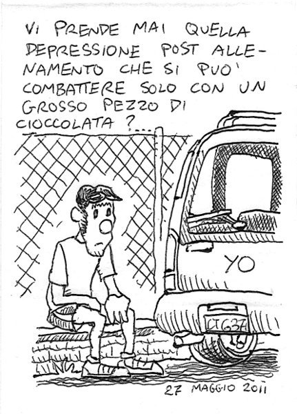 Il calo delle endorfine si fa sentire soprattutto in giornate calde come queste. Mia figlia combatte la sindrome come descritto nella vignetta! – Post Training Depression is a syndrome you can fight eating big blocks of chocolate. PM via dei Genieri. 4km L, STR, 4 x (300 L + 1km) (4’06, 4’06, 3’58, L), STR. Per il trail del 12 giugno (prossima gara) vorrei allungare un po’ le distanze. Me la sono presa comoda tranne la terza ripetuta tanto per dimostrare che posso scendere sotto i quattro minuti. Link to this article