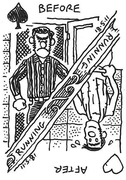 Ho un pò di dolorini all’anca destra (devo stare attento a non sollecitarla), da cui la vignetta. L’anno scorso stetti fermo 2 mesi per lo stesso problema, ma è anche vero che non prendevo nessuna precauzione. – How to hurt yourself: jumping from a wall 20 years ago during a performance. Allenamento pomeridiano a Villa Giuseppina. 3km L, 3km (12’44), R, 1km in progressione (4’12), STR Continuo a cileccare le variazioni, faccio 1000, 1000, 500, 500 alternando tra 4’20 e 4’00, forse devo cambiare le distanze. Link to this articleIl Ponte / The Bridge
