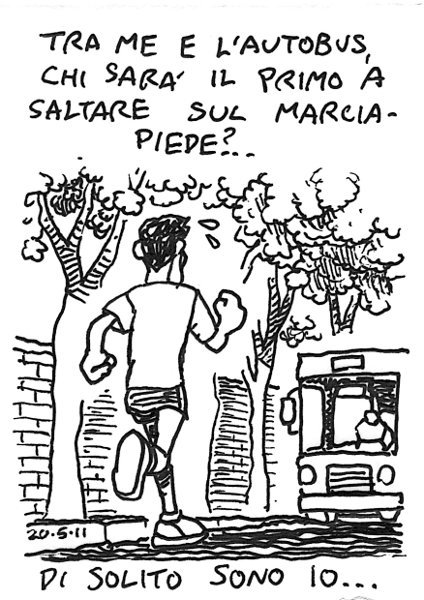 Qualche anno fa fui chiamato dagli architetti R. Cera e F. Flego per sviluppare i costruttivi della passerella pedonale di Villa Pamphili. – I contributed to the construction of this pedestrian bridge drawing some details. AM Villa Pamphili. 2km L, STR, 18’40, STR, 2km L. Volevo fare un po’ di lento e invece ho cominciato a tirare da subito su un percorso accidentato. Dato che ho preso qualche botta ho preferito fermarmi e tornare a casa. Per ora non mi sembra che ci siano conseguenze. Link to this articleIl / The Bus