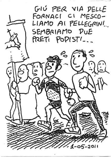 Con Stefano Leonardi sono sceso giù per via delle Fornaci chiusa al traffico in mezzo ai pellegrini venuti per la beatificazione di Wojtyla e risaliti su per le mura. Che dire, Roma è bellissima in primavera, e sono meglio i preti podisti che quelli pedofili! – Me and my friend Stefano mingled with pilgrims that came in Rome to watch Wojtyla’s beatification. We looked like running priests… AM Villa Pamphili, via delle Fornaci. 1h15′ L, 1km (4’06), STR. . Link to this articleLa sfida / The defiance