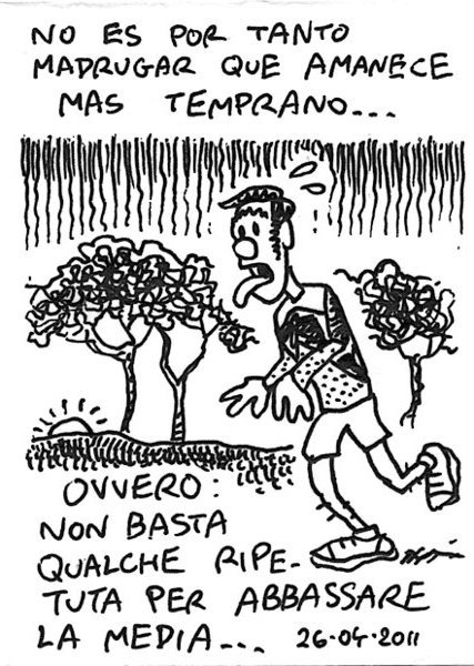Proverbio spagnolo: non è perché ti svegli presto che albeggia prima… – It’s not because you wake up earlier that it dawns before…AM Villa Pamphili. 2km L, STR, 5km (21’52), STR, 2km L. Una delle cose più difficili da fare è la corsa variata (ovviamente mio fratello Ugo la consiglia sopra ogni altra cosa). In questo caso per una media di 4’22 ho fatto il primo e l’ultimo km a 4’13 circa. Si può fare di più! Link to this article